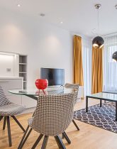 The second bedroom is a corner room with double windows. The kitchen has fabulous space, new appliances, and a laundry area. Other features include rich herringbone floors, crown moldings and coffered ceilings throughout the apartment. 1049 5th Avenue is a classic pre-war building located across from Central Park, the reservoir and The Metropolitan Museum. Elegant lobby and 24 hours doorman. This is a pet-friendly building.